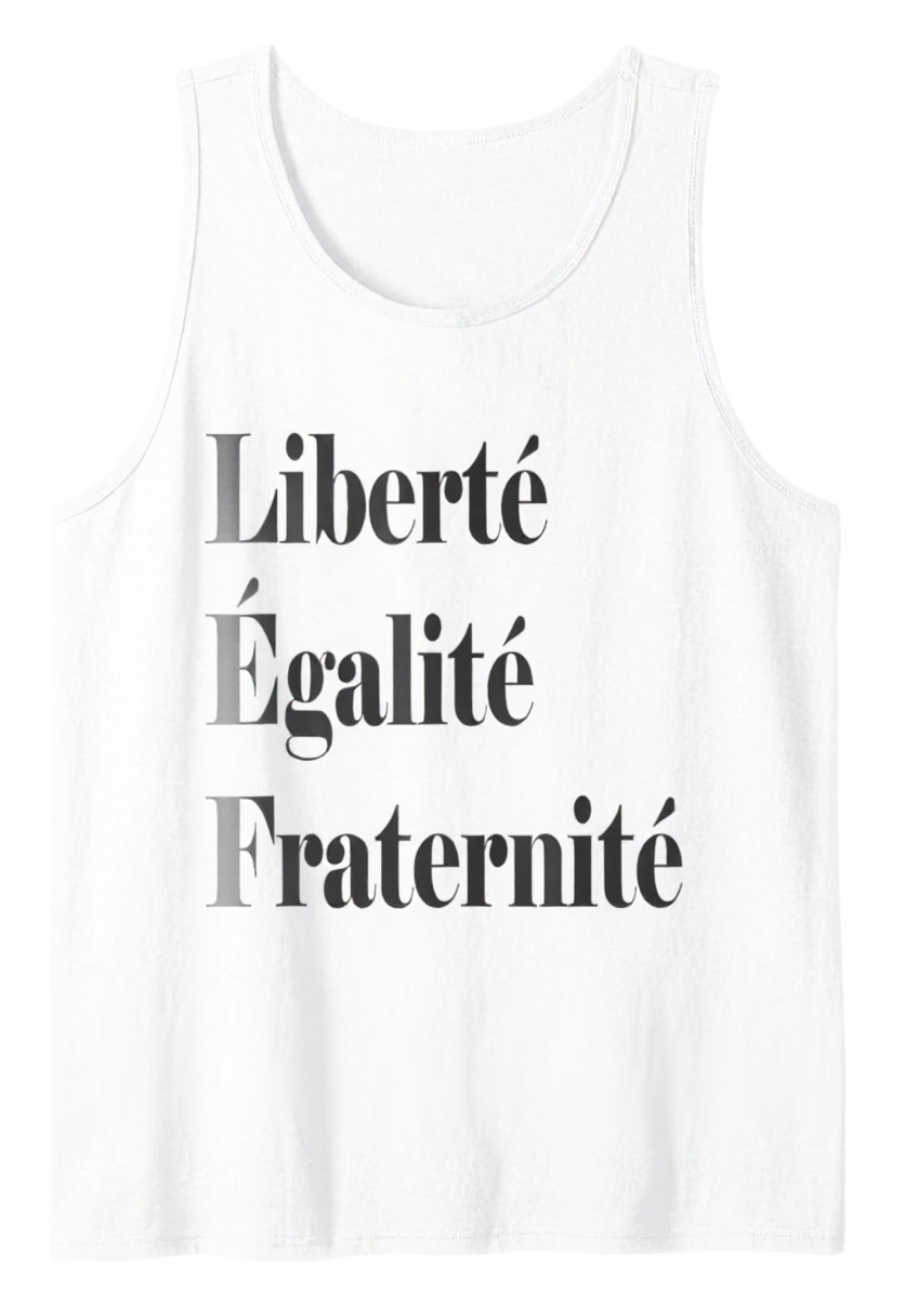 Ce débardeur met en avant le message emblématique “Liberty Equality Fraternité” de la Révolution française, avec une coupe classique et un design léger pour un confort optimal. Les manches sont renforcées par une double couture, et l’ourlet à la base assure une finition durable et résistante à l’usure.