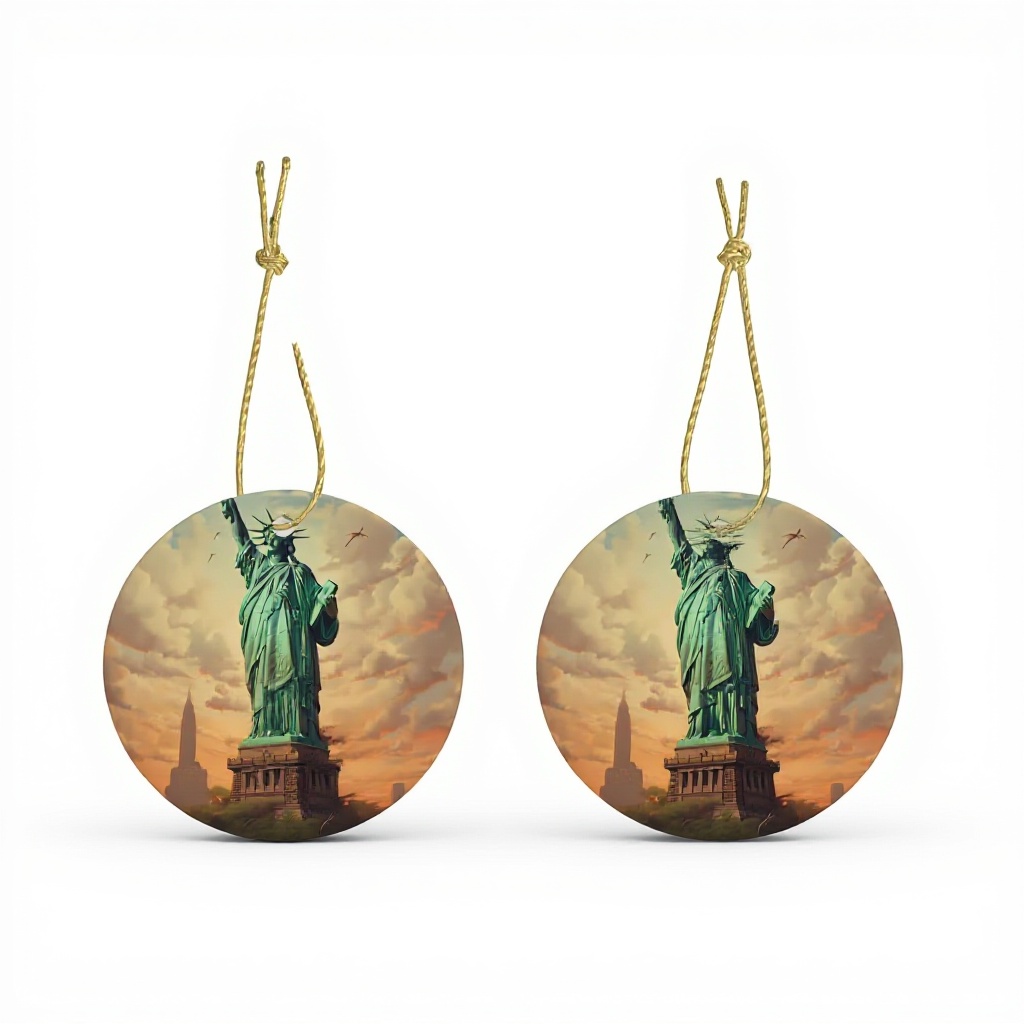 Ce pendentif rond en céramique WHJDPP représente la célèbre Statue de la Liberté, offrant une décoration élégante et sophistiquée pour vos fêtes. Fabriqué en céramique de haute qualité, il assure durabilité et résistance dans le temps. Le câble métallique doré inclus permet une installation simple et sécurisée sur diverses surfaces.